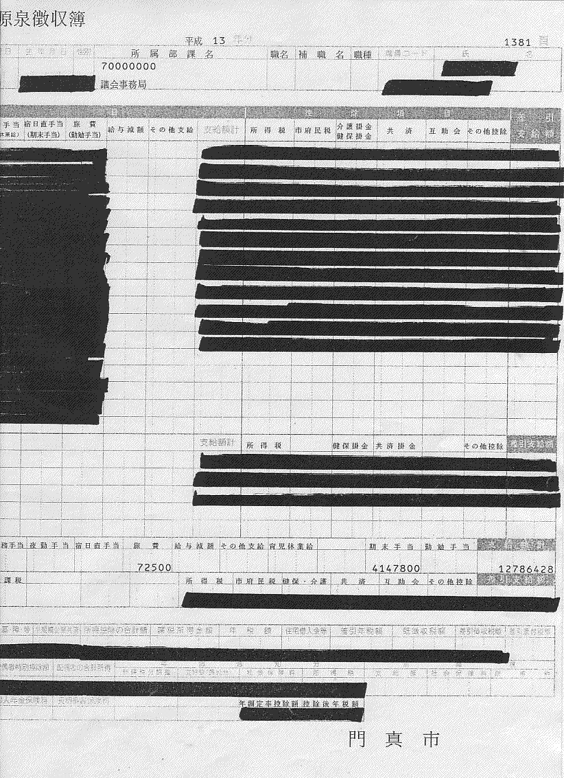 ◆ 議長の報酬実態(H13) ゲッ すみ塗りだらけ!◆