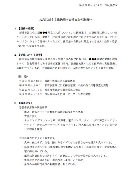 ※4/28報告(1)【都市政策課】調査報告の概要 ※4/28報告(2)【市民課】A氏に対する住民基本台帳法上の取扱い