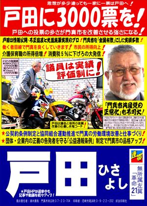 ・大久保生コン問題で住民説明会などを設定し、一定の歯止めをかけたのは連帯ユニオンの戸田だからこそ。共産党議員ではできなかった。